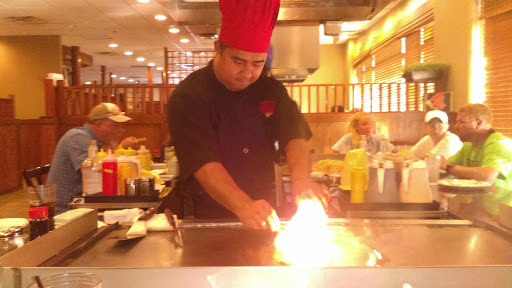 There was 8 of us there last night, it was our 1st time going there to eat will not go back , we was looking forward to it ,we got there and there cloths looked like street cloths ,then us ladies 3 of us went to the restroom while waiting on our Chef to cook for us ,we all was looking forward to see the fire thing the Chef seen the girls where gone and done it without us there they cooked our food with no tricks ,no vegetables where looking forward to seeing thethe tricks we had more RICE then MEAT , then they added 15% tip on our check and did not tell us until one of our friends asked what is this charge on a hand written ticket, and then while we was eating they bought the next plates out lined them on the grill gross probably the same way they did our plates and we didnt know, then they stood there and watched us eat kept graping our plates and we felt so RUSHED like get out, WE WILL NOT BE BACK !!!!!