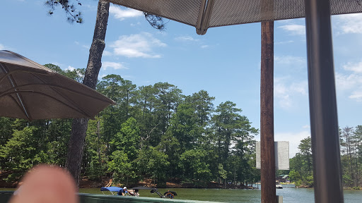 Right on Jackson Lake and has a great View. The food was okay but not fantastic. But if you are wanting a bite to eat overlooking the lake this is your place. Very relaxing. You can pull up your boat and eat or drive your car and walk in. Indoor and outdoor seating we took our dog and they bought him water without us even asking. I had the pot roast cheesesteak and it was tasty . I would come back and try more things on their menu.