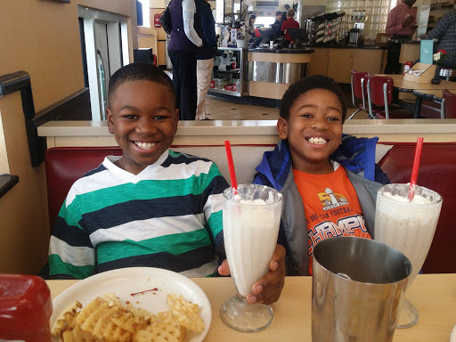Great place to stop if you are passing through and want a unique experience with your kids. They gave them little diner hats, there was a train that went around the restaurant, an old phone that theyd answer when a kid picked up, a kid sized entrance. The staff even took them behind the counter to "help" make a milk shake. It would have been a 5 star rating if they put as much focus on clearing the tables and cleaning the floors as they do their patrons. Its definitely worth the visit though!!!