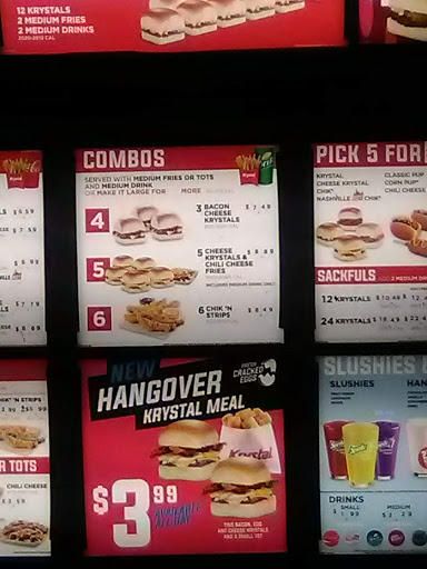 I like the food at Krystals, especially the 5 for $5 deal. I hear their breakfasts r great but the 11:00 cut off time for breakfast is a challenge for me. Wished the breakfast was extended to all day