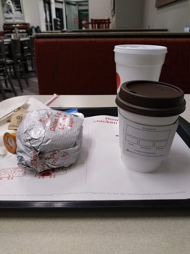 This Chick-fil-A, of course, is Chick-fil-A. Great fod, good service, and excellent other qualities you would find in fast food chains. However, among this CFA, I have a few things that detracted from my Chick-fil-A experience. As a customer, I noticed that despite the line wrapped around the belt fence, there was only two registers open. Also, they were some employees standing around, maybe cleaning trays or not seeming to be involved in a particularly pressing task. I think that they should prioritize serving customers over cleaning. Cleaning or restocking I think should be postponed until there is not a customer waiting in line. Although, this Chick-fil-A seems to be incessantly busy, so there is that. I also would say that the customer service inst quite up to par with the other stores. My waitress brought our food in a rather robotic matter, without looking at me or offering a smile. Also Ive noticed that at most Cfas the workers will occasionally walk around, taking trays or offering to "refresh your beverage". At this particular cfa though, Ive rarely experienced that type of service. Finally, as a regular Chick-fil-A customer, Ive gone through many a drive-thru. But this one seems to be unusually slow. No doubt, they serve hundreds of cars a day, and the line is continually wrapped around the building, but it progresses at a crawl. I suspect it is the windows speed that needs to increase, because the tablet-bearing ladies are always upon your car speedily enough.