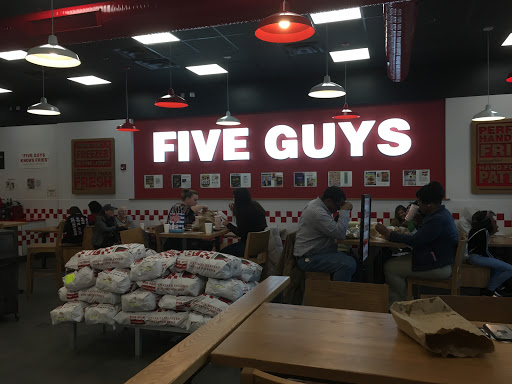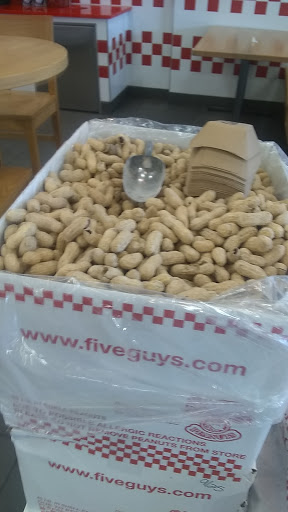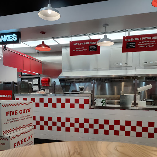 This is a fantastic 5 Guys, and all 5 Guys are fantastic. Staff is quick and generally in good humor. I love this place. Always generous with the fries.