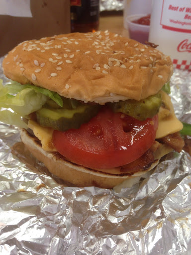 Its a Five Guys, and its good simple food. If youre going the low carb route, you can get the burger in a container instead of on a bun.