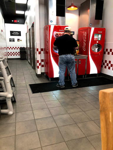 Dirty for a five guys......especially the food prep area and the floor was very dirty...staff Goofing around loudly.