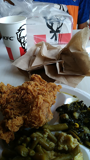 Average service, average food, too pricey. This location is always very busy. Theres rarely a clean place to dine in, so we get our food to go.... when we go that is. KFC in general has become too expensive for the food offered.
