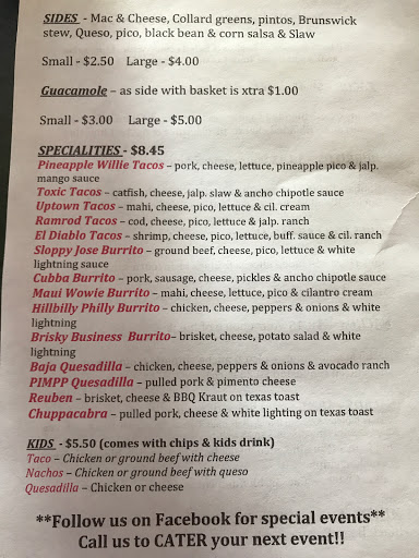 Great food! Have not had anything there that I didnt like. Mexican food with a funky Southern kick, but nothing weird. Love the Chupacabra sandwich (pulled pork and smoked gouda on Texas Toast) and The Pimp quesadilla (pulled pork, pimento cheese with smoked gouda). Add the homemade guacamole, and yum! Well worth the stop.