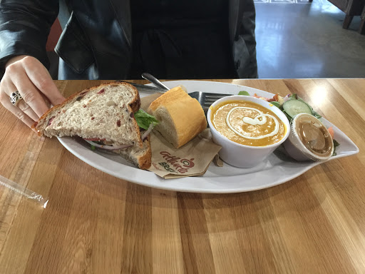 THIS is what Panera Bread USED to be, before it expanded massively and the food turned into cardboard.. we arrived in the evening, not really knowing what to order. I decided on the chicken pesto panini, She got a Trio (soup/salad/sandwich). The sandwiches were soft and fresh, mine was actually hot in the middle (looking at you PB..) and Hers was awesome. Tried Her squash soup, it was sensational. We will most definitely be coming back, we want to try the breakfast and coffee menus.