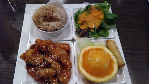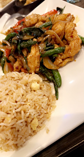 My dish was ok but not any better than a food court Chinese place. My wifes teriyaki chicken was inedible, tough, dry, may be some left over from the day before. All soups are priced $2 on the menu, yet they charged us extra for the coconut soup with our entree? Waiter service was decent. While the place looks upscale at first glance, the seating and tables are worn, fabric is stained and dirty. While I pads at the table are a nice idea, ours was covered with greasy fingerprints all around. This place has seen its prime time and is heading downhill. There are better and cheaper Asian restaurants in town.