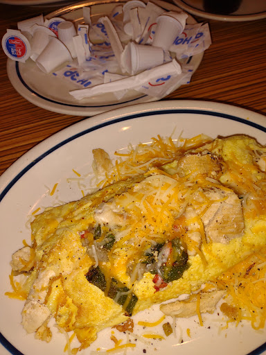 Went in this morning. Asked for two turkey bacon and two turkey sausage. Was given four pork sausage. Notified server and was given the two turkey bacon which I was charged extra for. Sausage was pork, not turkey! Friend requested egg white omelet. Was given omelet of whole eggs. Didnt leave a tip and wont go there again!