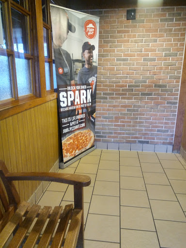 Pizza here is great when its prepared the Pizza Hut way! Pros: Fresh hot food, online orders ready on-time, pleasant and accommodating staff, orderly run kitchen, plenty of seating available, great parking and standard prices. Cons: Seating area a little gloomy, drive-thru can be slow at times. Suggestions: PizzaHut - please update your dining area and add brighter lighting. People dont like to eat out in the dark. Patrons: if you like pizzahut then you will enjoy the food as take out here. But if you want to dine in, be prepared for the dark room