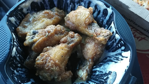 The experience was awful and excruciating. I though it was a prank for Halloween when I opened up the box for the wings. My appetite disappeared. They were undercooked, disgustingly large, and flavorless. Its like they cut the legs off a hen at the store and just put hot sauce on it. The cook had to be getting off of work by the looks of the wings! The wings were juiced up and a big as my head. I was afraid I might have died if I finished my wing. I am terrified of the side effects that come with taking a bite out of that chicken. This may be the worst experience I have ever had with food. NEVER ORDER WINGS AT THIS PIZZA HUT!