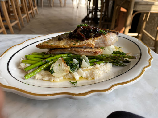 Great ambience. Bright white with plenty of windows. They have an outside patio as well for non-reservation. Server were very friendly. We went for my birthday and they had a special dessert dish made. Food was also great. Flavors were more french so buttery or seafood dishes with vinaigrettes. Not spicy or aromatic. Cheese plate was awesome and I was upset they only give you bread on request. Drinks were excellent has a french bikini which was gin drink. Just excellent experience and I recommend food wise mac and cheese with their steak and the mussels with shrimp risotto was good as well.
