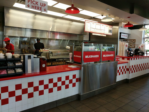 Great place, our home away from In & Out Burger in California LOL!! The staff at this location are outstanding. Whoever handles the training does a great job of teaching these kids customer service and quality. Management and workers alike will come out to see how the food is and that youre happy. Not much to say, its a burger joint and the food fries and drinks are on point. Oh they now have shakes. The shakes are very good like those old time thick shakes that you get at an Ice Cream parlor. I would highly recommend this 5 guys location