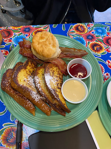 The one star is for our sweet waitress! She was great! No stars for the food, cleanliness or this location! Ive loved Flying Biscuit for years but they unfortunately have been on the decline. This location was filthy...like so filthy that if I didnt have a toddler and a baby to wrangle back into the car we would have left. I love their original soft inside, crusty, sugary outside HOUSE made biscuits, but they no longer serve the original Flying Biscuit! They switched to a Sysco, frozen, ready made blah biscuit. Boo!