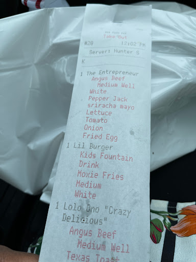 [Time & Date of visit] 7:30 pm- Thursday night Party Size: 4 [Location/Ambiance] Casual kind of vibe. The ordering line is formed nearing the open area near the bar, then leading to where the cashiers are at. Its a "fast casual" kind of setting, where you order and pay at the counter, are given a number while you pick out a table or booth, and then the food is brought to your table. Through out the dining area are tables and booths for 4. A family behind us didnt mind combining two tables for all of their kids. Noise level was average, you can clearly carry a conversation with out raising your voice I believe. [Service] Im docking a point due to the cashier confirming that what I wanted to order was the toppings from The Coop" chicken sandwich but on a burger. She even asked how I wanted it cooked. Though what I was given was actually just the "Coop" chicken sandwich. Its probably less confusing to just order the Entrepreneur burger and add the sides. Though we met up another fellow yelper and husband, I guess we continued to carry our conversations pass the closing hour. The wait staff actually waited for us until 10pm. With out mentioning anything to us. It wasnt until the cashiers/food runners were putting up the chairs that we decided we shouldnt hold them up anymore. Thank you for your patience with us Moxie Burger. Lost points earned back for sure. [Food Highlights] The Cadillac - I got to take a pic, but since I thought my burger was on its way I didnt ask for a bite. Missed out. My friend killed it, even though she claims to be not big on burgers (=P). The Coop - This sandwich isnt photogenic, every pic I took didnt look too appealing. Im just going to scratch out the pics and take one later. I rather not upload something unappetizing. The chicken was cooked well I think. Its was pretty moist through out though the toppings contributed to the flavor. I think by itself, this wouldnt be surviving on the menu long of being ordered. - Ok, pretty good Sweet Potato Fries (Shared) - Served in a basket, with generous portions, this is made for +2. Their version is dusted with a bit of cinnamon and sugar. With a sauce cup of honey mustard to dip in. Trust me, I know, "HONEY MUSTARD?!" Its actually not that bad of a combination. The honey mustard is only slightly sweet. I couldnt determine if I like it more with just ketchup or the honey mustard. - Good {Summary}: I think I will have to retry this place and make sure I get a burger this time. On their site they announce that Zagat gave them #5 for top 5 burgers in Atlanta. 3.5 stars for now, but hoping to revisit and bump it up.