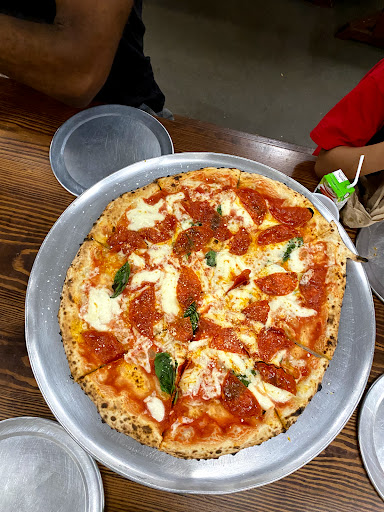 We chose this place because it has parking and lots of space for our boys to run without disturbing too many people. Stopping in for lunch on a Saturday, around 12:30pm, my husband ordered at the counter while I directed our rambunctious sons to the patio that overlooks 120 (theres another one on the other side, but it already had other patrons that I didnt want to disturb). The patio is fully enclosed, so I could let them run between tables while no one was around without having to worry that theyd run into the parking lot or back into the restaurant. We got a large Margherita with pepperoni on all and arugula on half. We also got an appetizer of the marinana meatballs. The meatballs came out super fast. 3 meatballs in a giant bowl of sauce, with 4 pieces of cold pizza crust on the side. The meatballs and sauce were fresh (chunky tomato sauce, fresh basil), but nothing memorable. The pizza arrived relatively quickly (the beauty of Neapolitan pizza), and was placed directly on the table. The crust had nice flavor and chew, and nice char on the edges, but didnt hold up to the toppings in the middle, leaving it a soggy mess at the center. Id stick to a smaller size that would allow it to cook more evenly in the future. People were friendly, prices were as expected for fancy pizza in Roswell.