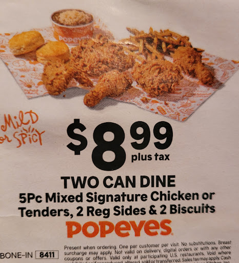 Me encanta Popeye Chiken y el lugar es genial acogedor y el servicio rápido. I love Popeye...