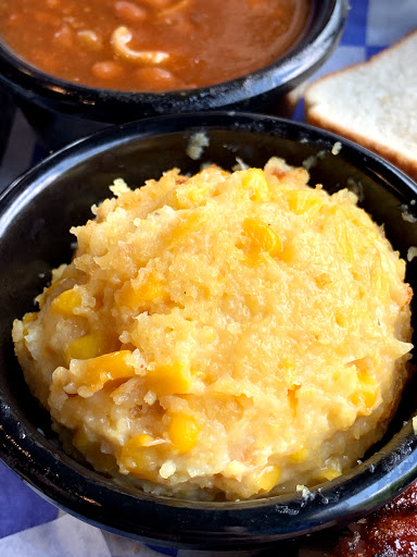 My ribs and and my husband brisket was so tender, that I could cut through with my fork. The greens were seasoned just right and I am picky about my greens. Potatoe salad was just like grannys. We really wanted to try the corn souffle, so we got a side of that and the banana pudding. The souffle was really good, but sweet and that banana pudding had to be scratch made. No instant pudding there. My husband and I kind of bickered over it. He got the most