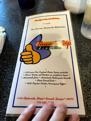 Went for lunch today and had great service and wonderful food. Started going to the original Thumbs Up in Decatur years ago, and have visited the other locations. Living in Roswell now and very pleased that I dont have to go so far for a GREAT meal! So many options on the menu. You will not regret going. And the outdoor patio is a big plus for these nice fall days. Weekends will be crowded and you may experience waits, but if you dont have time to relax and wait, go for lunch on a weekday. This is a keeper!