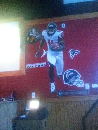 First visit to watch Cowboys vs Browns. Nice place. Wasnt crowded but Im sure it is when Falcons are playing. Had a pitcher of beer and chicken nachos. Food was good. Men restrooms had the basics. Nice placement of TV screens. Even got audio for the game because we had majority of Cowboys fans. Not the closest to my house but I will return. Even the ladies looked better than some of the other places.