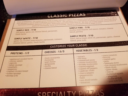 My wife and I both love this restaurant! It has a casual atmosphere, but brings far more to the table than a typical pizza joint. They have a very nice wine selection and most of the servers can assist you on picking out one, if you need help. Beer and bar selections are typical to that of most other restaurants. The best part of the restaurant is the pizza though! With creative selections with cute names already on the menu, there is a large enough of a variety to please almost anyone. You can also build your favorite from a large selection of toppings as well. The sizes of the pizzas are also a surprise, since most places do not offer individual pizza sizes. Thats available at Hearth. We typical order several and share among the group. The thin to hand tossed thickness of the crust is light, and flaky, and crispy all at once. They do not have thick crust available, but nobody weve ever taken to this restaurant missed it. This is a must try for ALL pizza lovers!