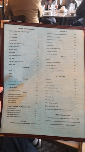 Consistent neighborhood sushi restaurant. I wouldnt travel out of my way to go here but if its near you its worth it as its a better option considering other nearby Japanese restaurants. Theyre usually packed but the wait goes fast. Tables along the booth are quite close so dont expect to have an intimate conversation. The service is good, but sometimes slow. Menu is diverse that even a non-sushi lover can find tapas like options (yakitori, cooked dishes, katsu, noodles, etc.). Sushi quality is consistent enough that its a go-to option. Its not phenomenal where youll think youre in heaven with each bite, but definitely above average. Prices are a little above average but thats because of the location. North Buckhead/South Sandy Springs. Theres a special Japanese menu but you have to be able to read it.