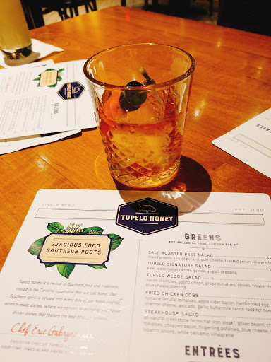 Every Friday I pick my daughter up from school and on our way home we pass Tupleo Honey. Last week traffic was a little heavy so we decided to stop in for an after-school snack. The interior decor is absolutely beautiful. The hostess was warm and friendly. Since it was the middle of the afternoon we were sat immediately. Winston greeted our table within moments of us being sat. His demeanor was warm and kind like a cartoon character. He want over the menu with us and recommended a non-alcoholic craft beverage for my daughter, the Lavender Lime-ade Fizz. Since my daughter loves wings, we ordered those and a couple veggie sides. After we placed our order Winston brought us complimentary biscuits. My daughter accidentally put too much honey on hers and a replacement magically arrived. Our food arrived in a timely manner. Everything was great. I must say the wings were much larger than anticipated. My little foodie ranked them a 9.5 out of 10. Well be back!
