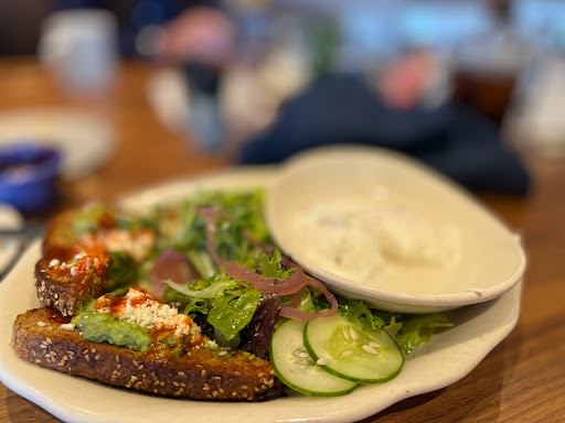 Just a disclaimer - my first impression of this restaurant was a to go order for lunch, so I didnt get the full experience. The first issue I experienced was when I called to place a to go order at lunch. They dont take to go orders over the phone yet, so you have to come in and order to go from the bar. An inconvenience for to go business, but they are still new and getting everything together, so Im sure this will change down the road. Just some minor service hiccups: I asked for onion on my veggie burger, but none came with it. The menu says the veggie burger comes with a house made smoked jalapeño aioli - I was really looking forward to trying this, but there was barely any on the burger or bun - something that can easily be fixed if I was dining in. There were about 5-6 hosts/hostesses gathered at the hostess stand at the front of the restaurant, but not 1 managed to say bye or thanks for coming when I left. Again, minor things, but worth pointing out. The food. As I mentioned, I got the black bean veggie burger. I thought it was a very solid veggie burger, and 1 I would order again. Not the best veggie burger - that crown still remains with Houstons - but a great offering for this area. Also, the order came with a homemade biscuit and blueberry jam/jelly - both were delicious. I imagine breakfast here is very good. A welcomed edition to the Sany Springs/Buckhead cooridor. Once this place gets its bearings, it should be a consistent, solid go to restaurant.