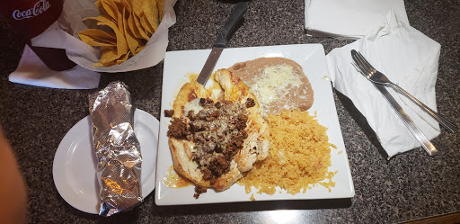 Ive been here several times with friends and family and have enjoyed the food. The final and last time I went we discovered a long strand of a metal scouring pad in my daughters taco. Inside a wad of meat, in the beef taco. Our waiter had already taken forever to get our drink order and then still messed up our meal order even though he said it correctly. He assumed I wanted chicken even though I said beef chimichangas twice over. So after discovering the metal strand it took the longest time for anyone to come near our table and to get someones attention. He was confused when we pointed out what we found and had it on the table for him to see. He calls another waitress over and she brushes it off as it accidentally got in it and proceeds to bring us another. What restaurant mixes raw beef in or around a sink? Thats the only way a piece of scouring pad could get into the meat and be cooked in a wad. I know it wasnt intentional but that is just ridiculous and harmful. We warned friends and none of us will be back to eat here. I suggest you make the trek downtown to eat Mexican.