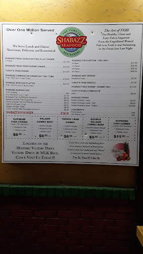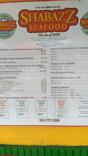 Ive been eating at Shabazz for about 30 years I love the food I love mr. and mrs. Chavez or should I say Bishop Shabazz hes done great things for the community hes very friendly kind-hearted Shirley anyone living of visiting the Savannah Chatham County area should be visit Shabazz on Montgomery and Victory Drive simply wonderful