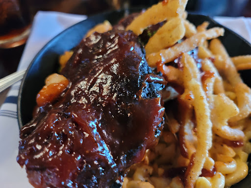 Nice service from my waitress Sygdney. She remembered me and my friend from a prior visit, even what I ordered. The food is tasty and fresh. Last visit was the July special of BBQ Ribs & Hinequater w/ mac n cheese (little to much sour cream in it) and bakes beans. The dessert that I ordered was the Fried Peach Pie w/ vanilla bean ice cream (states candied pecans but they are plain) was good, not too sweet, even though Id prefer it to be. Todays choice was the Atkins Nachos with grilled chicken. It was good. Nice flavor. No dessert selection. Ok, I decided to get a dessert. Choice was chocolate peanut butter biscuit pudding. Nice, sweet and warm.