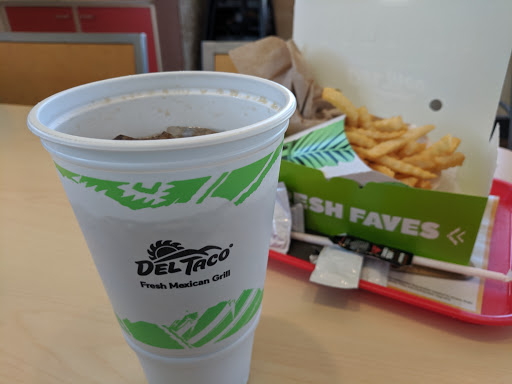 Edit: Very slow service here! This is a good Del Taco location if youre eating inside. Their tacos are cheap and delicious. The one problem with this location is the speed at which the drive-thru line moves -- its always so slow. Also, there is a curb so you cant escape the line if you decide not to order.