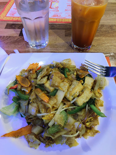 My go - to place for Thai food. Great selection of Thai food with a nod to some Chinese dishes. Pad Thai w/ chicken is always perfect. Temperature hot. Nice seasoned. Great place for weekday lunch. Lots of parking during weekday evenings and Sundays, because the bank is closed.