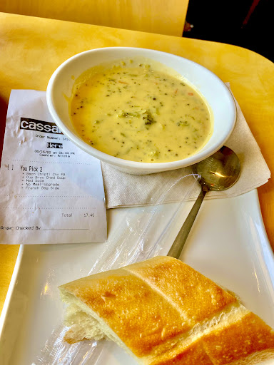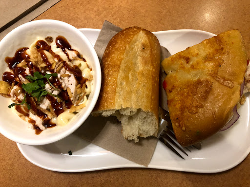 The first time I went to this Panera we attempted to order bread bowls with mac and cheese. The cashier informed us that they were out of bread bowls, at which point we ordered the mac and cheese without a bread bowl. When asked what sides we would like we asked for baguettes to which the cashier began to get annoyed at us and said "I said we were out of bread.." I was unaware we were supposed to translate "we are out of bread bowls" as "we are out of bread entirely". I thought maybe this was just a bad night for them, but the second visit got even worse. My roommate and I had ordered rapid pick up which said it would be ready by 6:40PM. My order was not out until 7PM and my roommates was no where to be seen, which we informed the cashiers. We then proceeded to the end of the counter to watch for her order which was sitting on the counter next to the manager. We watched for 5 minutes as it remained untouched until we asked him if it was ready. He snapped at us that he had been waiting for us to let the cashiers know it wasnt there (despite the fact we had). He then told us that the mac and cheese was out and my roommate needed to choose a different soup. She chose broccoli cheddar and we left. It wasnt until we got home that we realized the mac and cheese was $2 more expensive than the broccoli cheddar, so now she didnt get mac and cheese and she had essentially been over charged by $2 to get something she didnt really want. On top of it all, my panini was lacking the spinach and the chicken hardly covered half of the entire sandwich. Definitely never going back to this location.