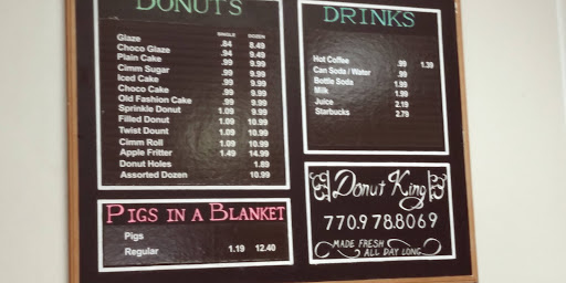I had my first doughnut at Donut King last week and they are the best doughnuts in Georgia!!! Also, the staff are all very friendly! The sour cream and the maple cake doughnuts are the best, yet I love all of their doughnuts!!!