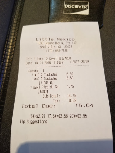 Its the typical Mexican restaurant. Nothing special at all. I received my shrimp quesadilla togo to find the juice from cooking shrimp and peppers on grill was floating at the bottom of my togo box along with the Mexican flag salad floating in the shrimp juice. Disgusting. The rice is bland and not my favorite Mexican. I love el del Rey taqueria off Buford hey. best Mexican ever. Real deal Mexican!! Say no to little Mexico the name is deceiving