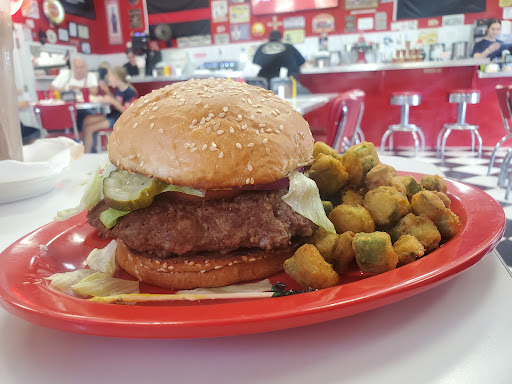 This is a great Family Friendly Restaurant located in historic Social Circle. They love kids and welcome you with a friendly smile. The food is great diner style food with an emphasis on throwback burgers, fries and milkshakes. The atmosphere is fun with all the 50s diner decor in the place.
