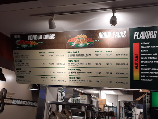Theyre okay... I would only go for the boneless wings... the bone in wings are big, like they took a whole wing and cut it in half... if you like small/medium sized wings like I do then this isnt the spot for you. Also, the seasoning on the fries is good, but the fries themselves , not my preference. They have good flavor choices though and I love the fact that you can mix and match wing types and flavors.