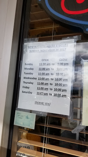 | Working: | 11AM–10PM 11AM–10PM 11AM–10PM 11AM–10PM 11AM–10PM 11AM–10PM 11:30AM–9PM |