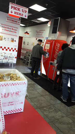 Worst five guys in town. Burger has so much ketchup ( only topping ) that its soggy and dripping. Ordered fries extra extra crispy. Employee repeated it back then didnt bother to put it on order. They were half cooked and greasy. Will not go back.
