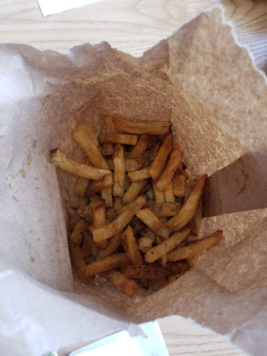 I love their burgers and fries, but they are always slightly overcooked. Wish they would put the fries in the bag first instead of making me dig into all the fries to get my burger.