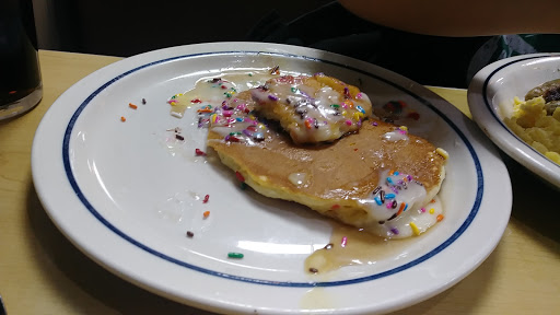 Except for Mr. Roach who scurried across the table prior to my meal arriving this is a typical IHOP: fast service with predictably standard fare. (Who doesnt like IHOP?) The restrooms could stand a good steam cleaning/power washing. When they "remodeled" this store they evidently forgot about doing those. Given the clientele they might post a sign prohibiting the use of cell phones during peak hours since you practically sit on top of the adjoining tables. But hey, that isnt likely to happen, so if this annoys you (As it does me) try to go during off hours.