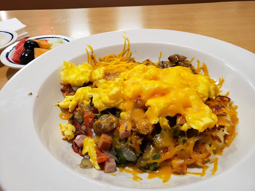 Hash browns were under cooked, eggs appeared to be powdered eggs and not real eggs, staff was polite but very loud talking to one another in the kitchen, server, when asked for ketchup, went to a table where some patrons had just left and grabbed the mostly empty bottle then placed on my table. Did not even bother to clean the bottle from their germs nor bothered to clean the lid from where they had got ketchup all on it. Service was good but food quality was bad. Not sure if will be back or not, leaning more towards the not. Waffle House is right next door, at least present a cleaner atmosphere.
