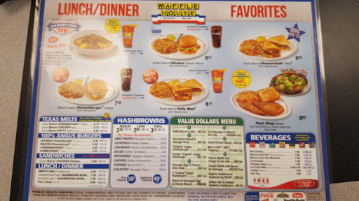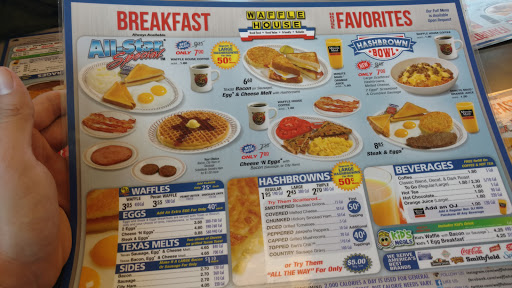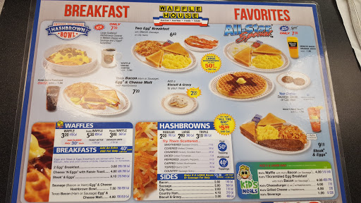 waffle house in general is good if thats the type of thing you are in the mood for. this location has very spotty service. cant really go wrong with a texas cheesesteak and hashbrowns.