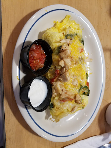 Poor service. We waited over 30 minutes for our food. Listened while others around us complained about not having the right food. I got my steak omelette and there was 3 pieces of meat in it and two slices of cheese thrown on top instead of the shredded cheese. On the way out the manager was arguing with the cook about telling the customers why they werent getting their food. Its horrible here. After a long day at wild adventures we just wanted to eat and go back to our hotel. Im just disgusted.
