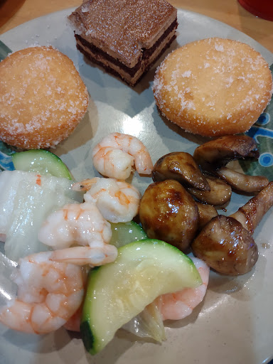 Jumbo shrimp with heads on overcooked, couldnt get shell off; what little I could get out of shrimp shell tasted funny. Mussels in shell had ketchup squirted on them; I like mussels but did not eat because of the ketchup. No General Tsao that I could find, main reason I go to these type buffets; had to add hot pepper sauce to honey chicken---didnt work for me. Ice cream was pre-scooped and set in a freezer shelf with multiple other flavors, the chocolate ice cream collected all the odors, couldnt eat that. If you are all about quantity for $10, then youll like it. Id prefer a little more quality.