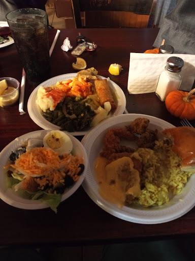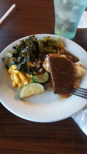 Been coming here for 10 years since it opened. The owners are such a nice couple and "Mama Kim" knows me by name when I come in! The food is Southern home cookin away from home. Full selection of food, so much to choose from. Collard greens, fried green tomatoes, butter beans, mashed potatoes, soups, fresh fruit, desert cakes, and ice cream machine, and (my personal favorite) fried chicken liver. Thats only a bit of what they have to offer. Waitresses are very polite and thoughtful, always taking care of you. Restaurant is clean, no bugs, and smells good. The tiled floor and building is a bit old, but were visiting for food and not a trip to the Ritz, right? Its very spacious and always packed with customers. I make it a point to visit whenever Im home from deployment.