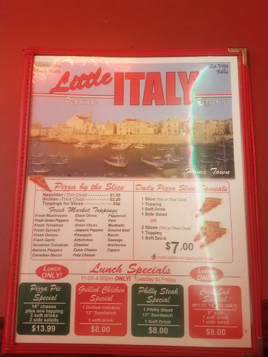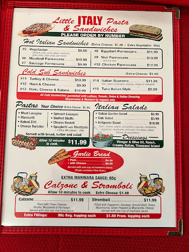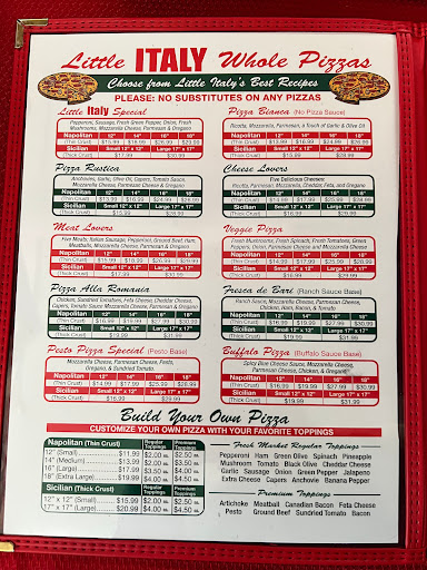 I used to love Little Italy however over the years the quality of food has dropped. The staff seems to care less about getting an order right too. So, if you just want a good pizza, this is your place. However, if you are looking for a good calzone or a stromboli then find another place. The strombolis are premade and you cant remove anything you are allergic to, in the past you could. So sad that I cant get a good stromboli anymore!