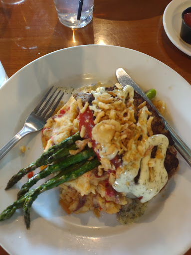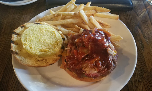 This place really misses the mark in customer service and quality of food. Its our first time coming here and just about everything went "wrong". We walked in and had to wait to be greeted by the hostess because she was taking a reservation on the phone. We got seated in a booth (excellent) but it took a while before our waiter stopped by to introduce himself. And a while again before he took out order. My wife and I got sweet tea and my sweet tea had white stuff floating around in it (my wifes tea did not). Dont know if I got a dirty glass or what? I ordered the Pulled Pork BBQ Sandwich which had a lot of fat on it in my opinion. Also the menu said it is topped with BBQ sauce and there was NOT one drop of BBQ sauce anywhere on the sandwich! When we ordered my wife asked for ketchup and mayo and I asked for mayo. When the food came out there didnt bring ketchup or mayo. Our waiter was no where to be found. He disappeared frequently during our visit and stayed gone. The only reason this review is getting 2 stars is because of the waitress we flagged down to ask for ketchup and mayo and she was nice and jumped into action to get our waiter to bring us the condiments. He came by and dropped off ketchup and mayo for my wife (not me). He refilled our sweet teas (or else we would have been almost empty for the meal.) It took a while before he showed up again to ask if we wanted the check and a little bit before he returned with the check. I thought it was funny because he walked by the table, stopped, backed up and then dropped off the check. Guess he was just too busy to provide customer service to us the entire time we were there. Based on this experience I wouldnt recommend this place to others and I wont be back. This place just didnt impress me in the least.