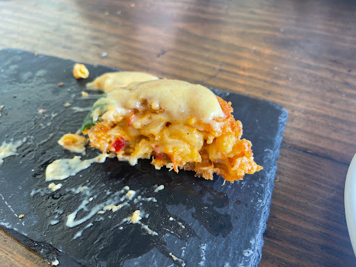 My mother and I were pleasantly suprised to find this good example of a southern gastropub in downtown Woodstock! I live in Atlanta and enjoy the fresh take on southern cuisine as served at Rosebud and Food 101, and so I enjoyed my lunch at Freight Kitchen. We both loved the fried green tomato and felt it was the best we have had anywhere, due to the traditional corn meal breading, overall crispness inside and out, and perfect compliment the spicy topping brought to this standard. We also had a lovely piemento cheese with fried crepe chips and veggies, which I liked enough to take home with me. Mom loved her BBQ pork sandwich with perfectly cooked (NOT greasy) potato chips. My pork belly sliders were ok, not the best Ive ever had, but I ate them and felt good about it. I was so pleased to see the large, carefully chosen selections of liquor and craft beers they have in their bar. They give nice drink suggestions along with the description of the items on the menu. I was intrigued by the desert menu as they have a draft beer float. Maybe next time I wont eat so many delicious small plates and will give it a try. The staff and management are so friendly and helpful. I would eat here just to be appreciated as a diner and a visitor - so rarely found in restaurants today. I believe that here you participate in the process of evolution of the dishes and menu. Both the server and manager (owner?) asked specific questions of how we felt about the food, both accepting compliements gracefully and taking suggestions into consideration. So unique. Woodstock is lucky to have this delicious, sweet place.